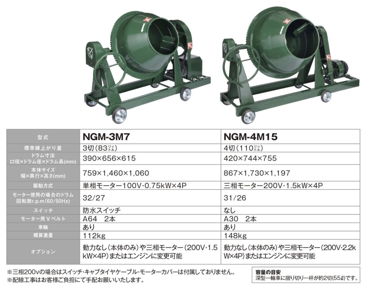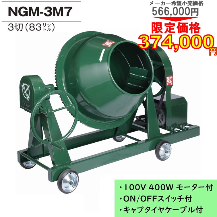 コンクリート混錬用 NGM-3M7 日工 トンボ グリーンミキサ コンクリートミキサ モルタル兼用 3切(83L)電動モーター式 車 小型 |トンボ工業