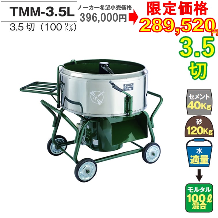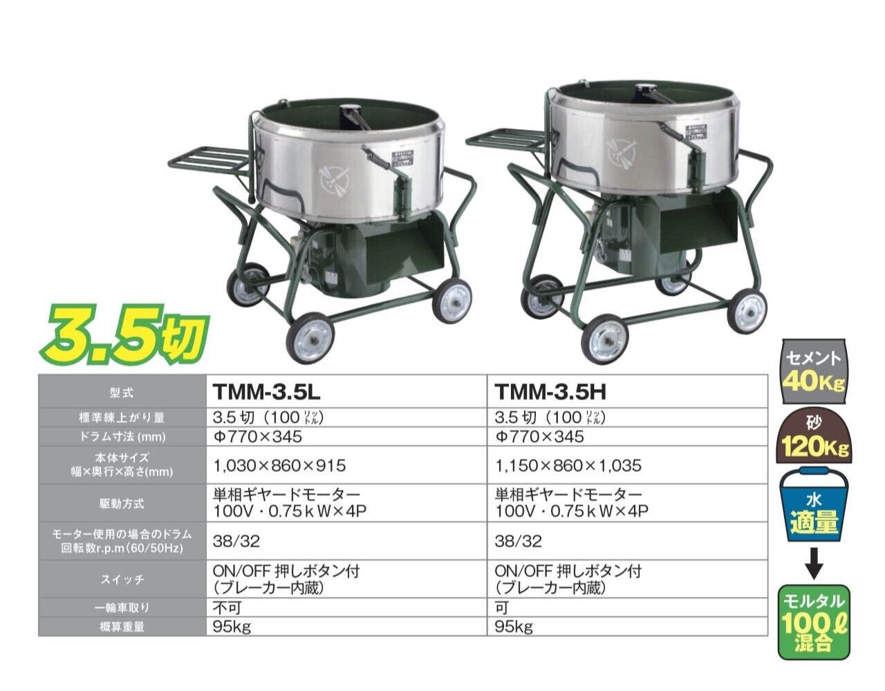 モルタル混錬用 日工 トンボ モルタルミキサTMM-3.5L (ドラム側面のみステンレス)(100L)小型 ロータイプ |トンボ工業