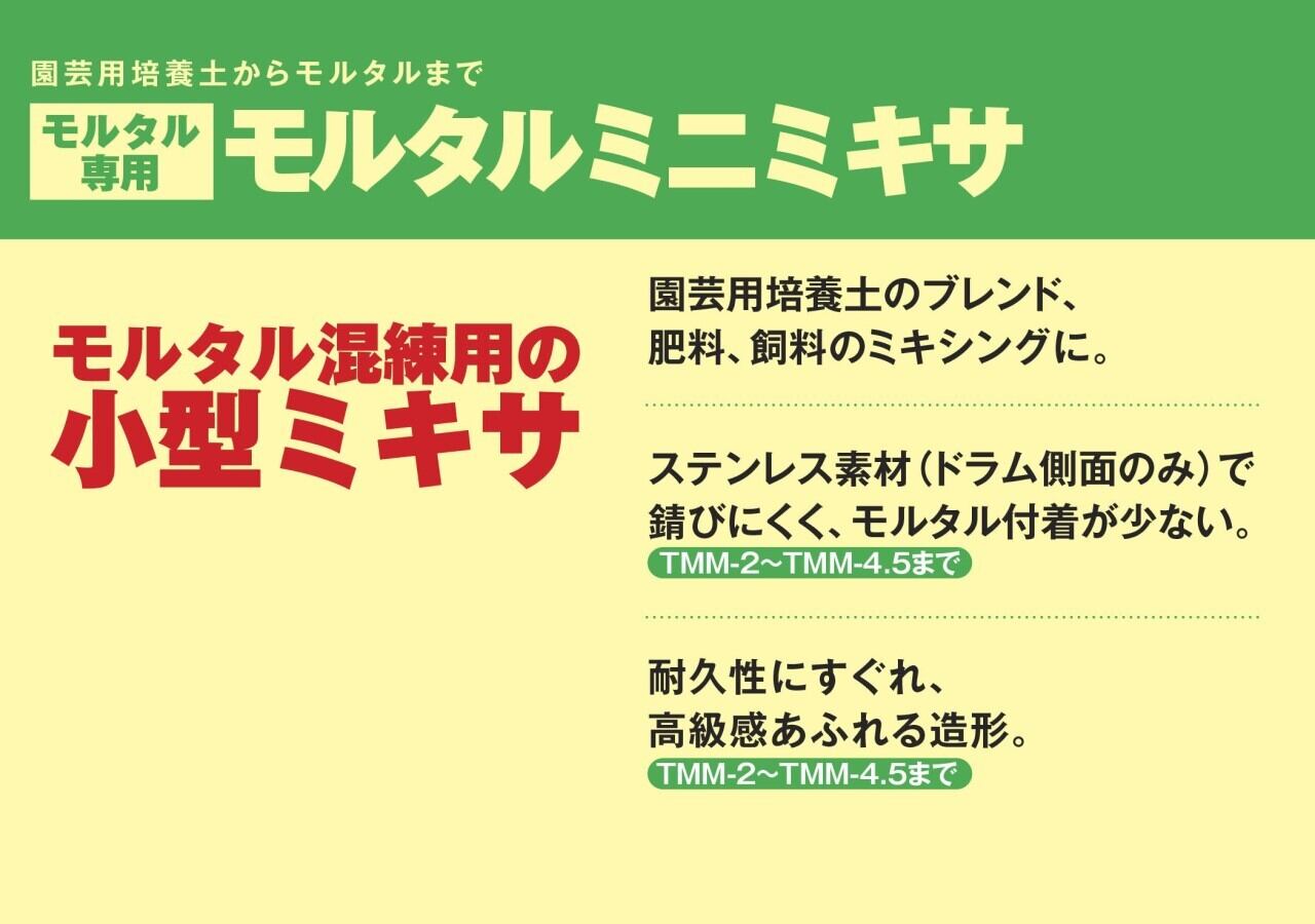 モルタル混錬用 日工 トンボ モルタルミキサTMM-2.8L (ドラム側面のみステンレス)(80L)小型 ロータイプ |トンボ工業