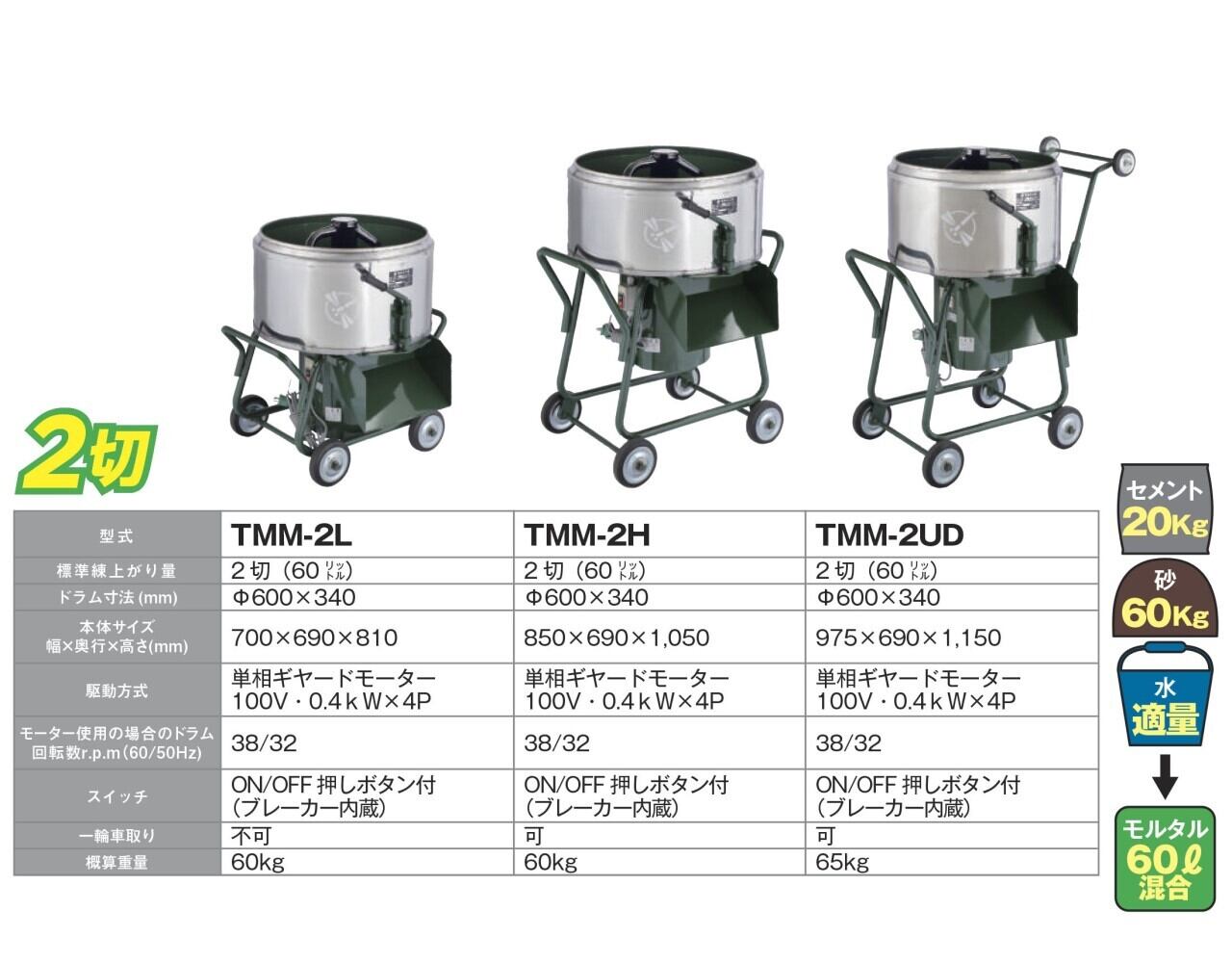 【アウトレット品】TMM-2UD 日工 トンボ モルタルミキサ(ドラム側面のみステンレス)2切(60L)小型 補助車輪付きで一人で積込み可能 TMM-2UD