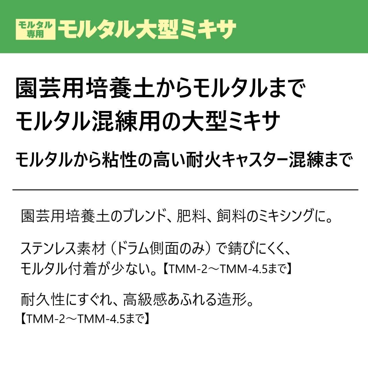 モルタル混錬用 日工 トンボ モルタルミキサTMM-6(200L)大型タイプ |トンボ工業